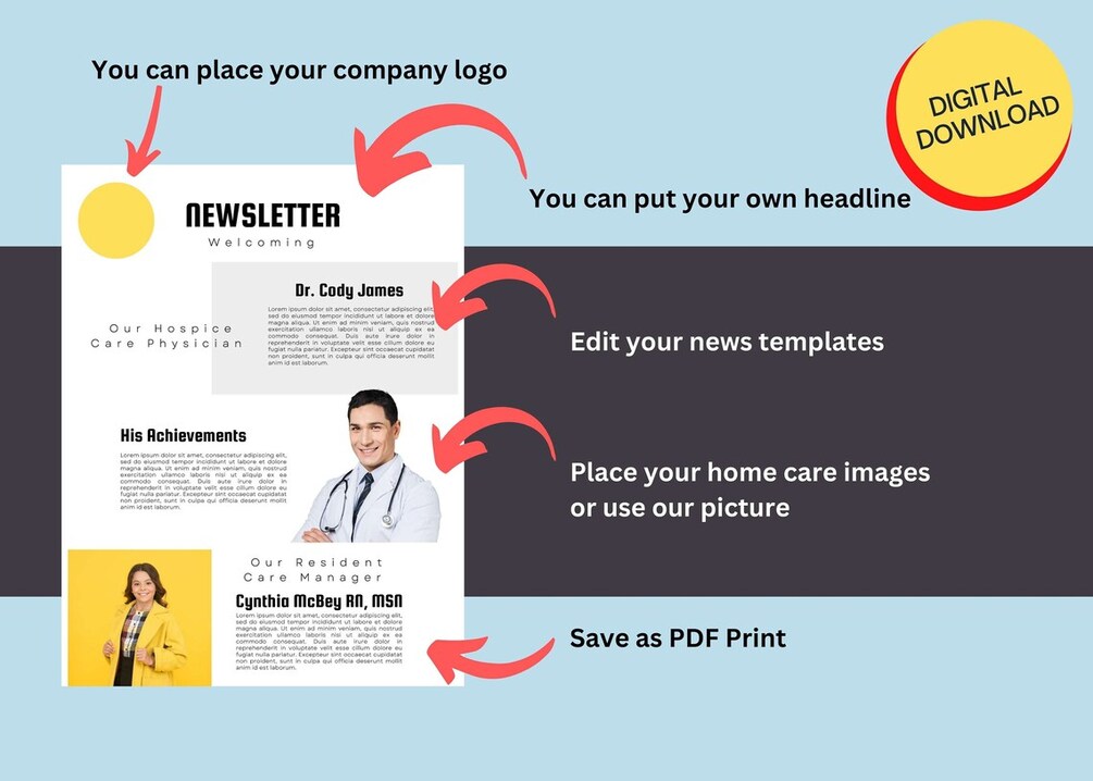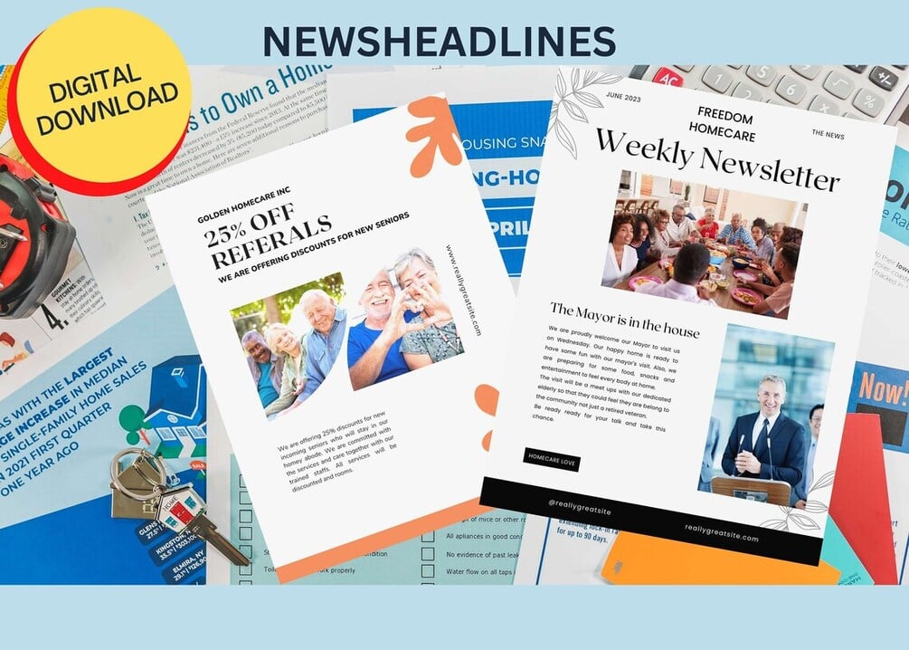 Homecare Business 30 Newsletter Templates, Canva Editable, Home Health Brochure, Flyers and Pamphlet, Nursing Home Newsletter Bundle