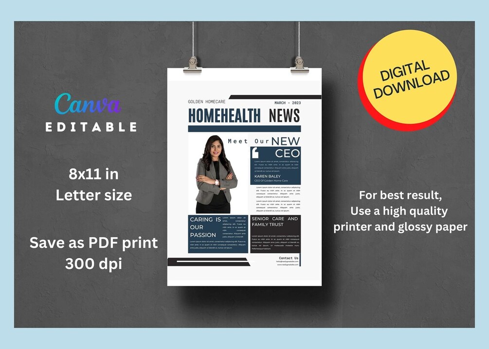 This is perfect for you to start your Homecare Business 30 Newsletter Templates, Canva Fully Editable, Home Health Brochure, Flyers and Pamphlet, Nursing Home Newsletter and Headlines which you can give to your clients for referral and family. As part of your advertisement and memorandum, this is a great help templates.